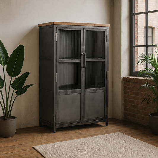 Highboard >St. Louis< Vitrine aus Metall & recycle Holz