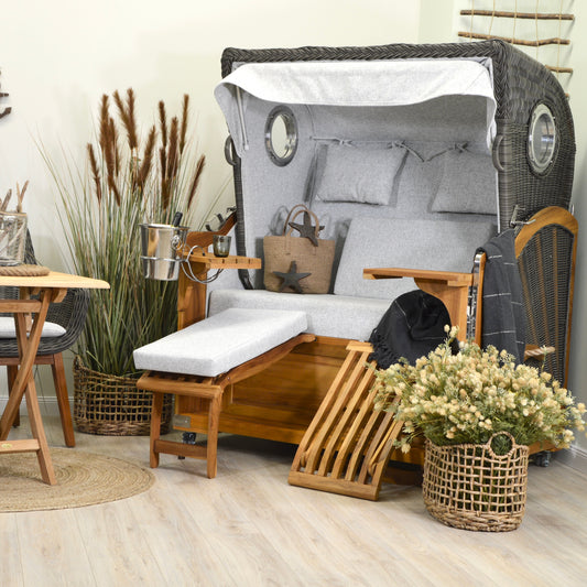 Premium Strandkorb >Black Pearl< mit Bullaugen 160cm