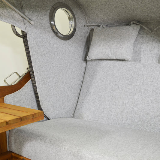 Premium Strandkorb >White Pearl< Teak mit Bullaugen 160cm