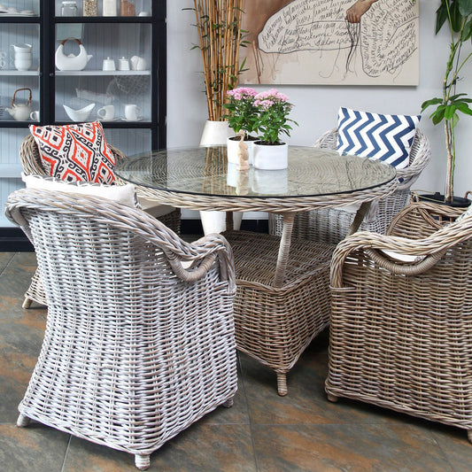 Rattansessel >Athena< Sessel - White Wash mit Kissen