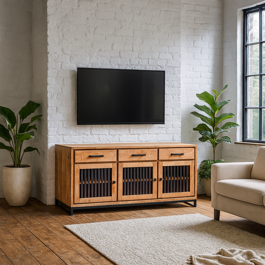 Der Industrial-Stil besticht durch die Kombination von Altholz oder Mangoholz mit massivem Metall. Der raue Charme natürlicher Holzoberflächen trifft auf klare, kühle Metallelemente und kreiert ein urbanes, modernes Ambiente. Der Industrie Stil ist perfekt für Loftwohnungen und trendbewusste Einrichtungen. Dieser Look vereint robuste Materialien mit industriellem Design – für einen unverwechselbaren, zeitgemäßen Wohnstil.