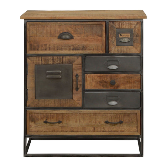 Kommode >Railway< aus Altholz und Metall - mit 6 Schubladen