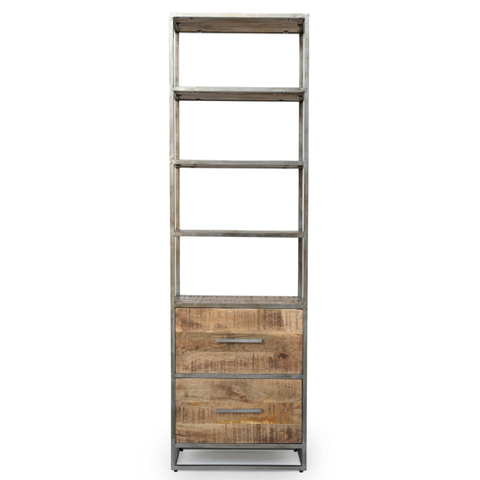 Buchregal Chicago aus Metall und Mangoholz - 2 Schubladen