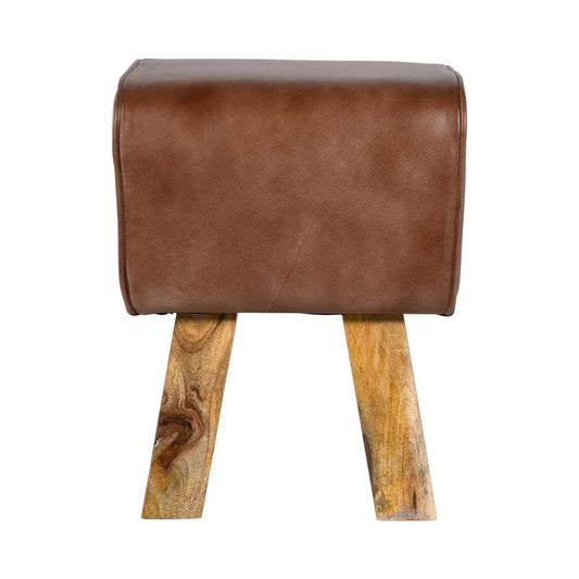 Hocker >Patna< Premium Büffelleder mit Mangoholz - Farbe braun glänzend