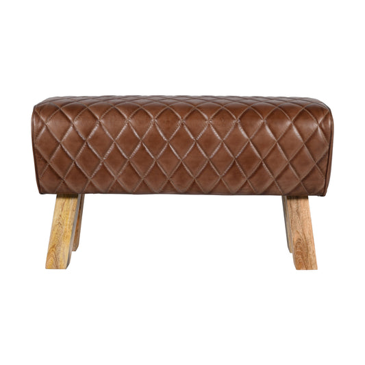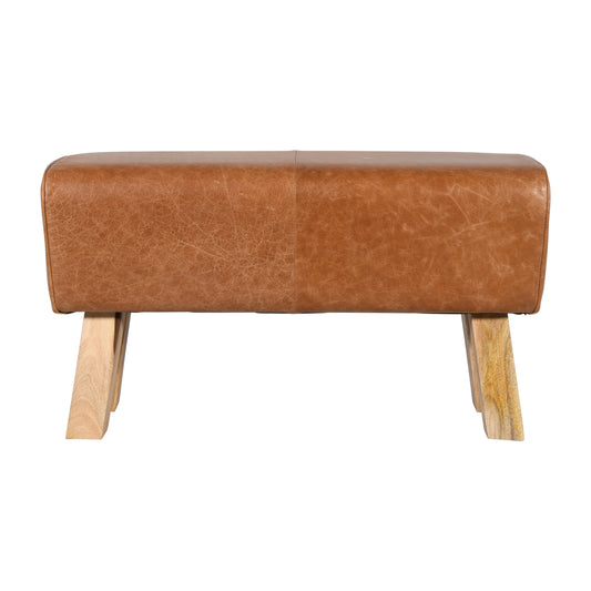Bank >Jaipur< 86cm Premium Büffelleder mit Mangoholz - Farbe braun