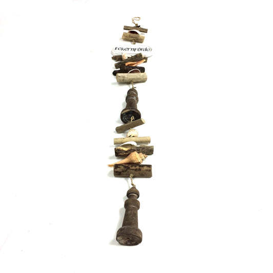 Treibholzkette Windspiel "Segelboot mit Fisch" aus Holz