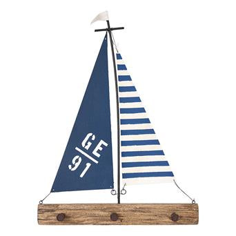 Treibholzkette Windspiel "Segelboot mit Fisch" aus Holz