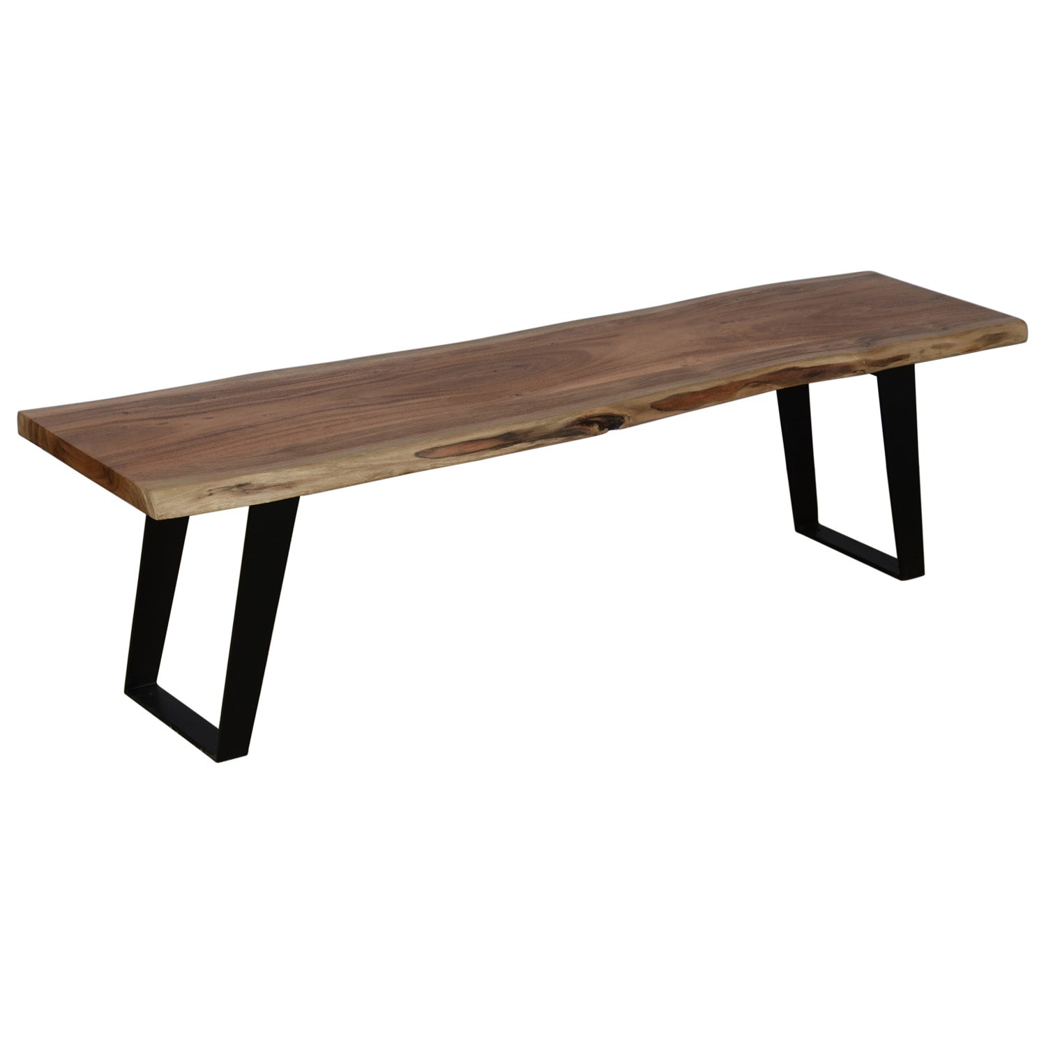 Massive Sitzbank aus hochwertigem Akazienholz mit einer schönen Baumkante und Metallbeinen