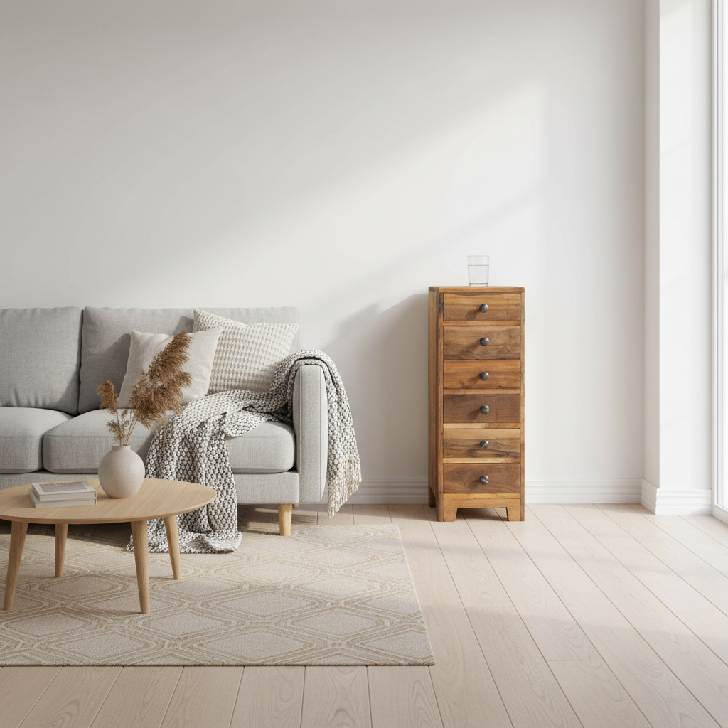 Unsere kleine Kommode mit komfortablen 6 Schubladen für allen erdenklichen Kleinkrams ist ein stilvolles Platzwunder. Der kleine Schrank macht sich perfekt als Stauraum im Flur und begrüßt eure Gäste mit seinem einzigartigen Look. Auch im Wohnzimmer fliegt ja bekanntlich immer wieder Tüdelkram rum und wartet darauf in diesem Schränkchen aus Altholz geordnet zu werden. Auch als Nachttisch neben dem Boxspingbett macht diese Kommode eine tolle Figur. Ein Hingucker ist das Kleinmöbel mit Sicherheit in jedem Raum.