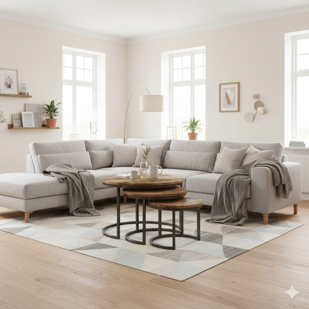 Unsere Couchtische aus Mangoholz und Metall kannst du in drei verschiedenen Größen erwerben. Solltest du dich für zwei oder drei Tische entscheiden, kannst du die verschiedenen Größen ineinander schieben - so wirken die Tische nicht zu wuchtig. Und wenn du doch einmal mehr Platz brauchst, ziehst du sie einfach auseinander.
