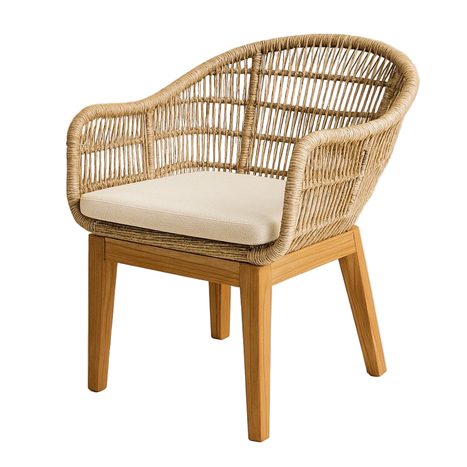 Material: Gestell aus recyceltem Teakholz, Sitzschale mit Alurahmen und Viro-Geflecht