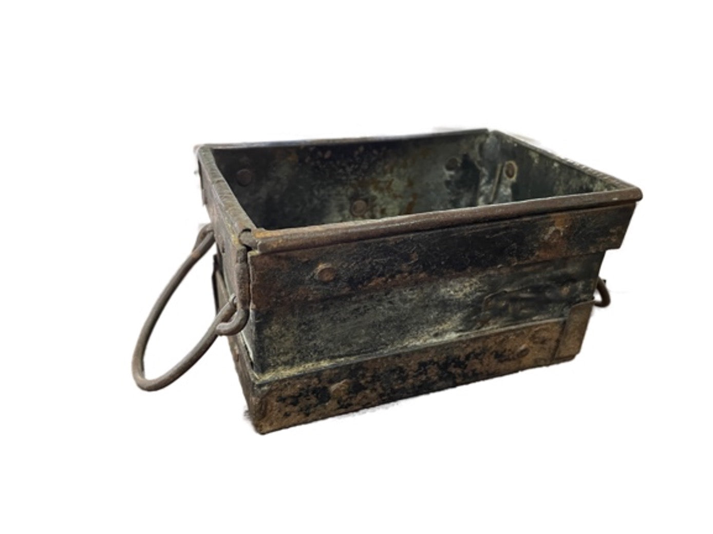 Kleine Kiste aus Metall mit Henkeln