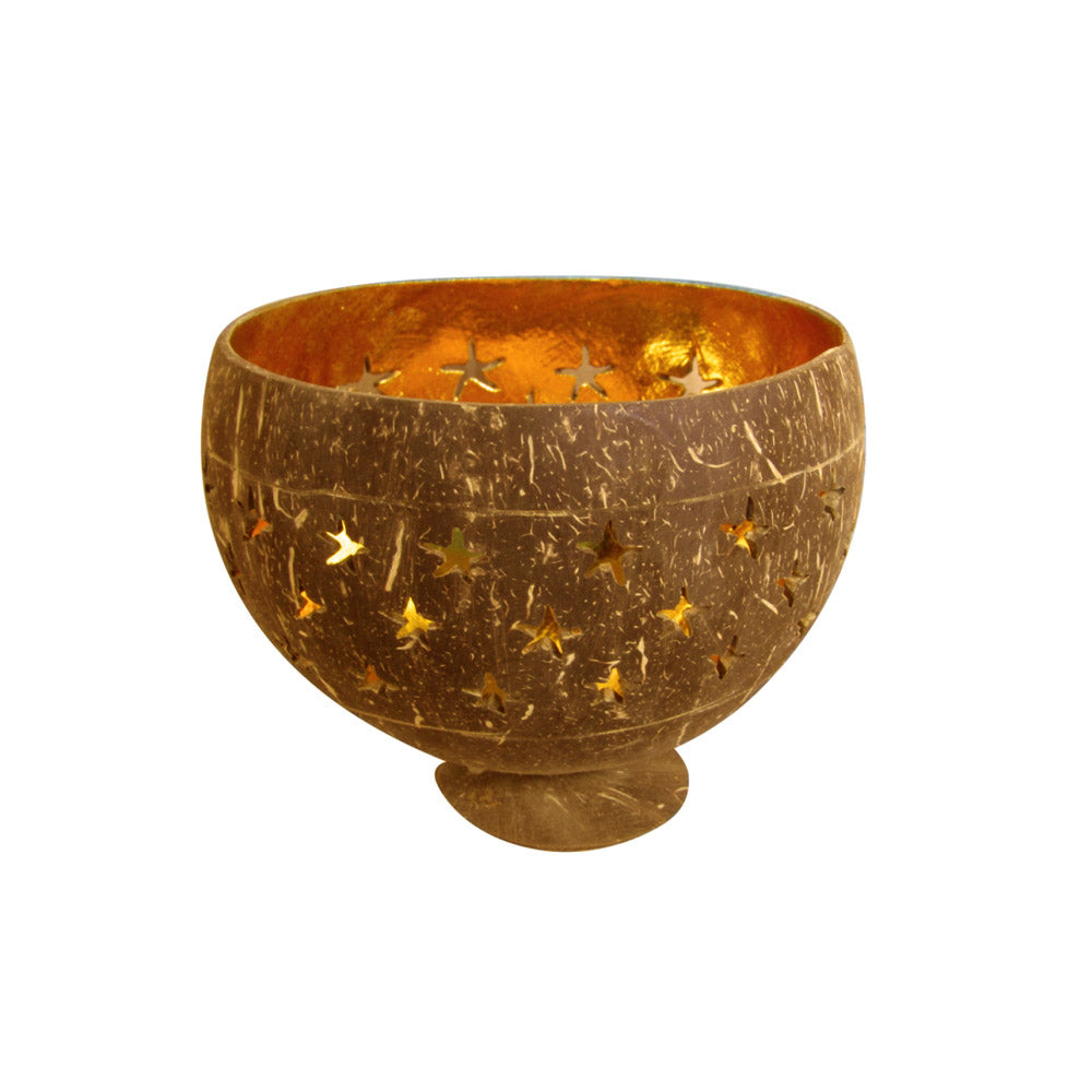 Kokosnuss Schale Windlicht Dekoschale mit Sternen