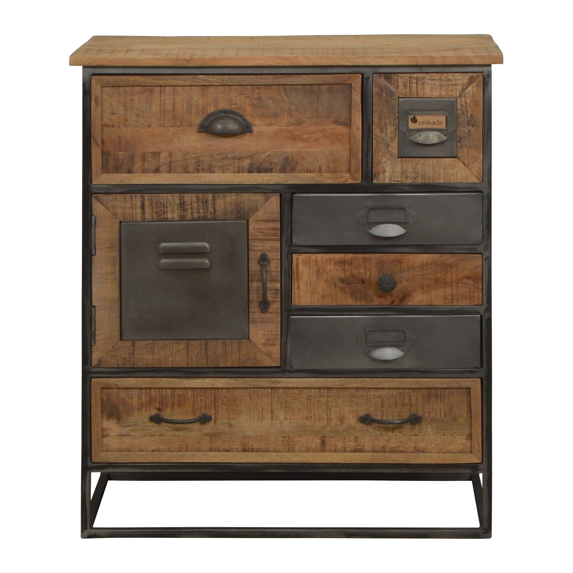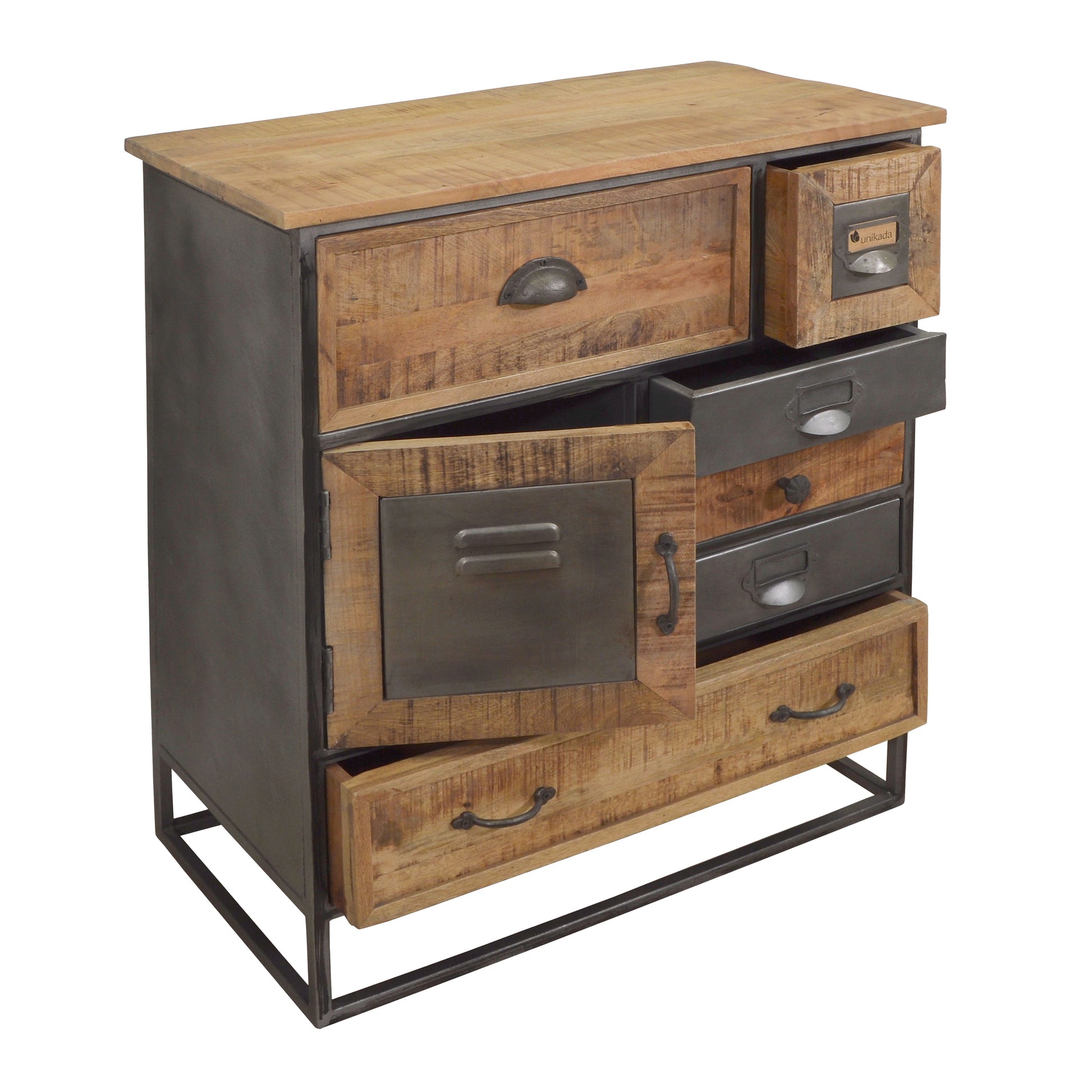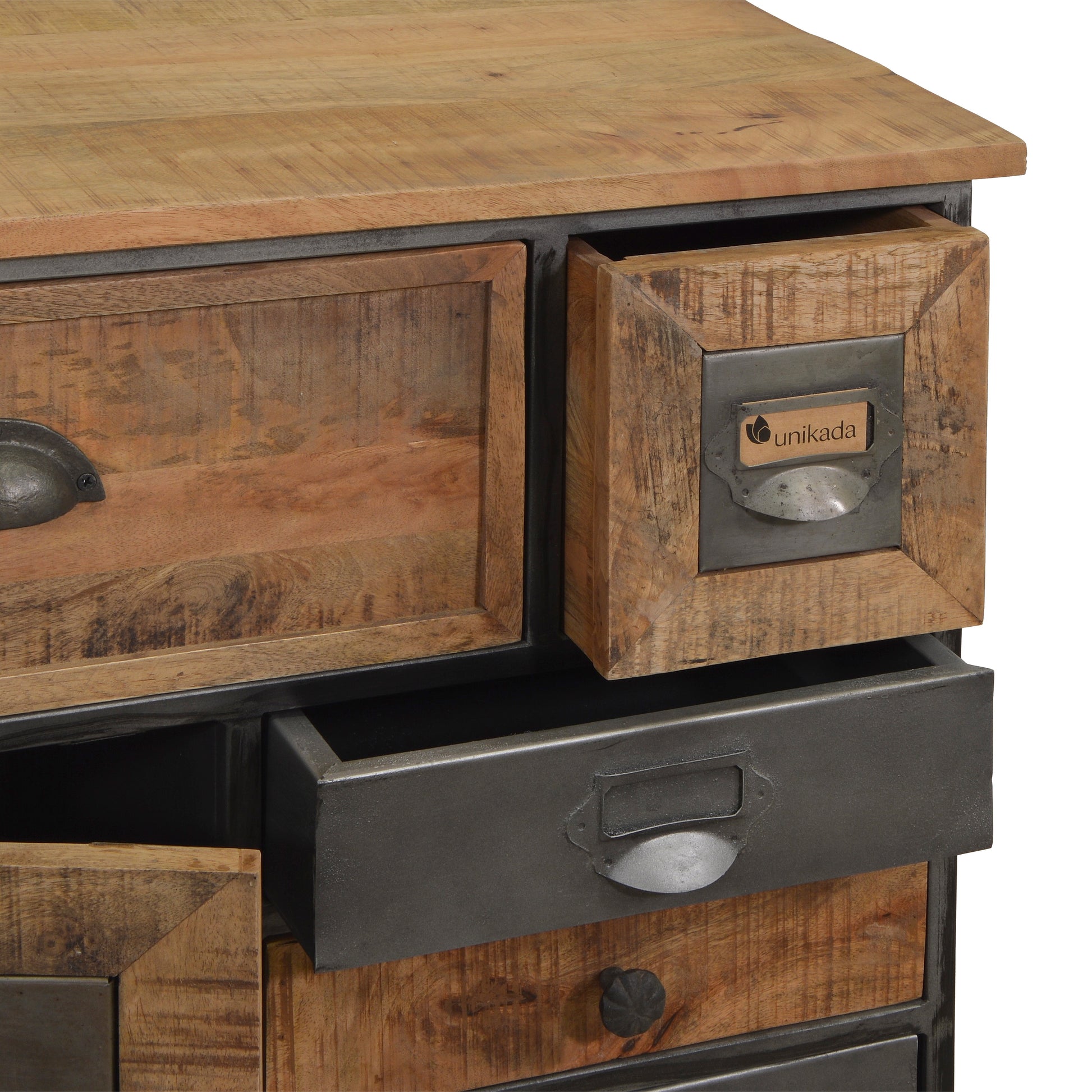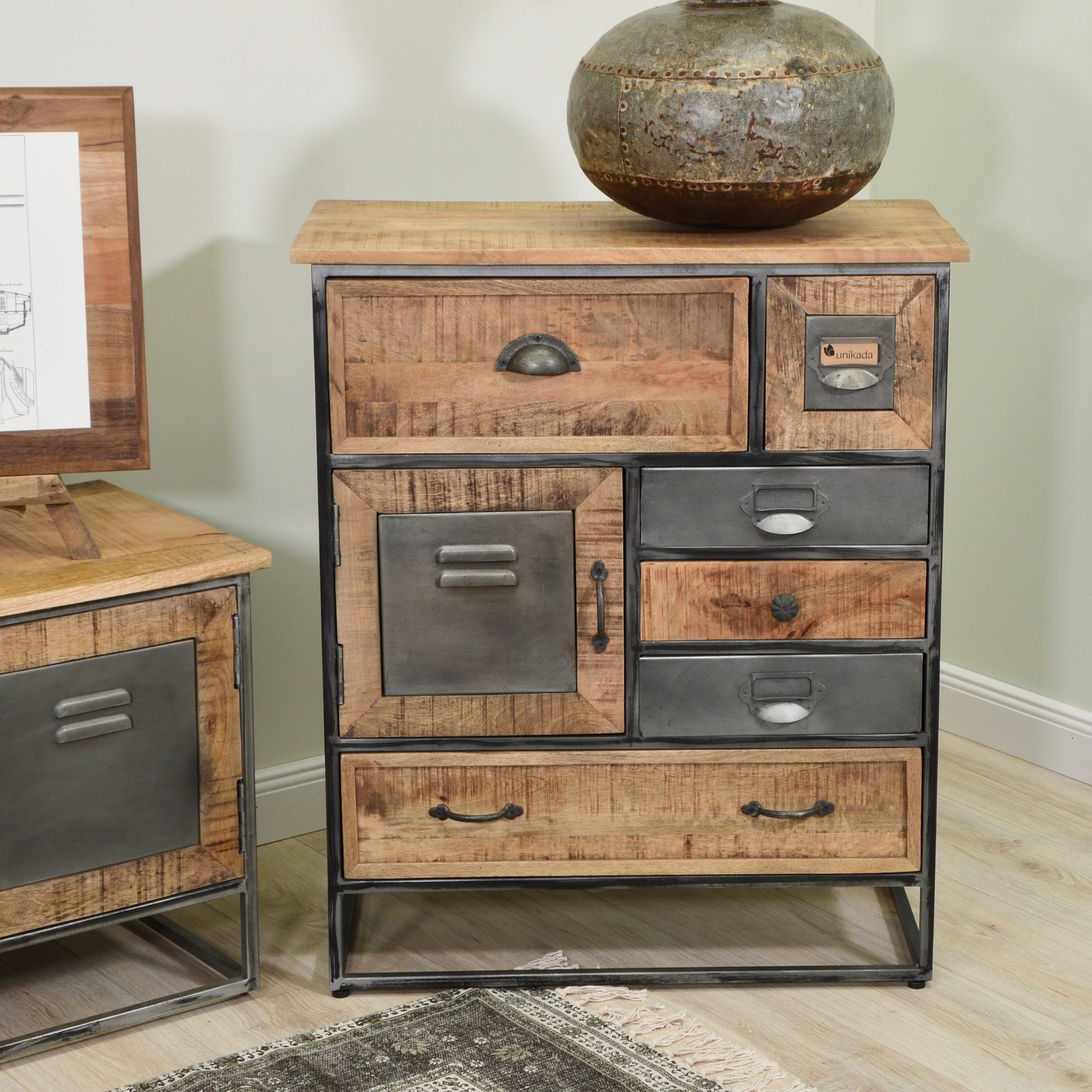 Kommode >Madrid< Mangoholz - 6 Schubladen & 1 Tür