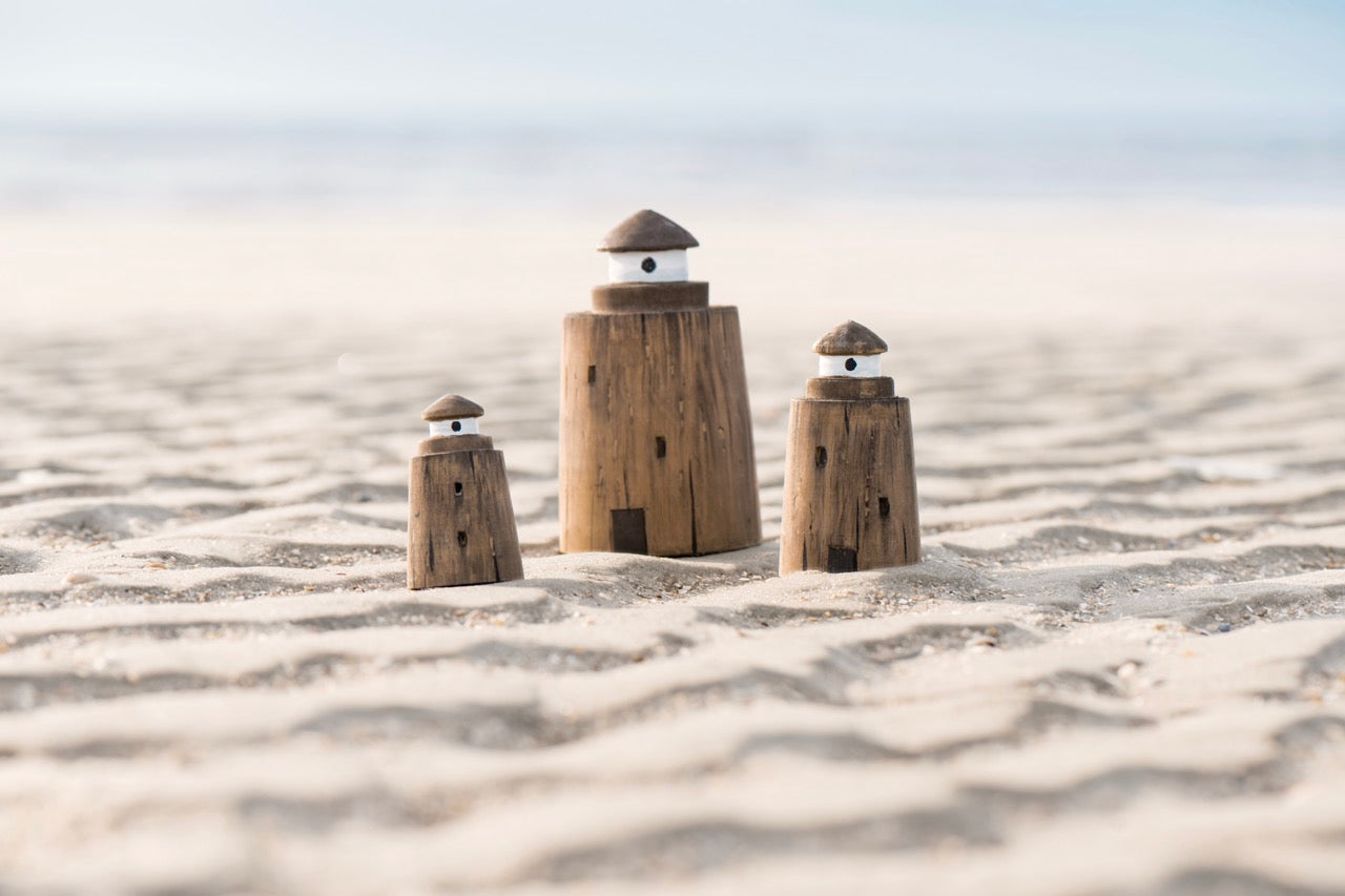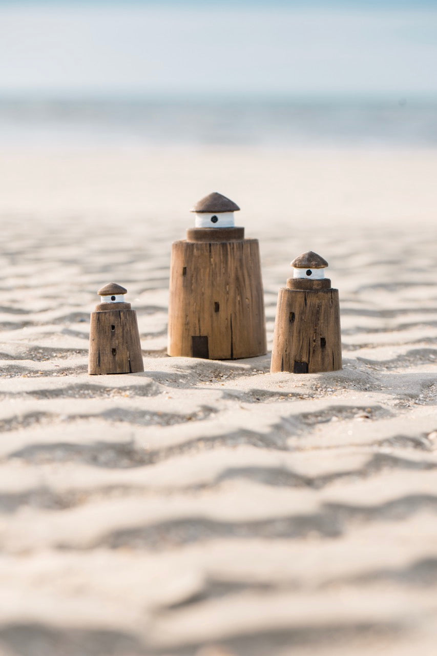Ein kleines Stück Küste für Dein Zuhause! Dieser handgefertigte Deko-Leuchtturm aus massivem Holz bringt maritimen Charme in jede Ecke. Die rustikale Oberfläche mit sichtbaren Holzstrukturen und die minimalistische Form machen ihn zu einem stilvollen Hingucker – ob auf der Fensterbank, im Regal oder im Bad.