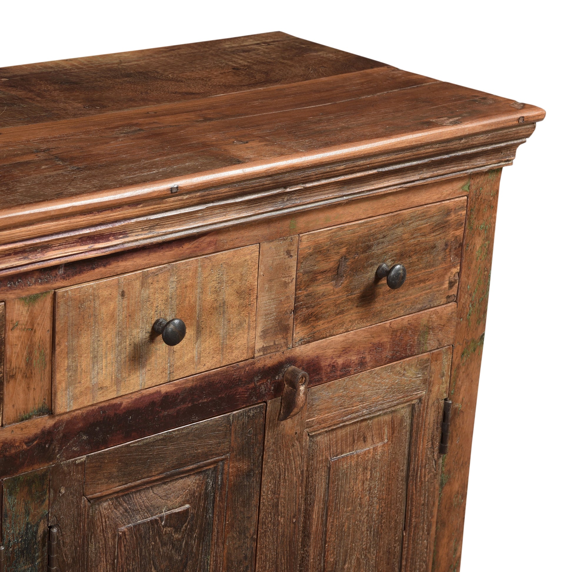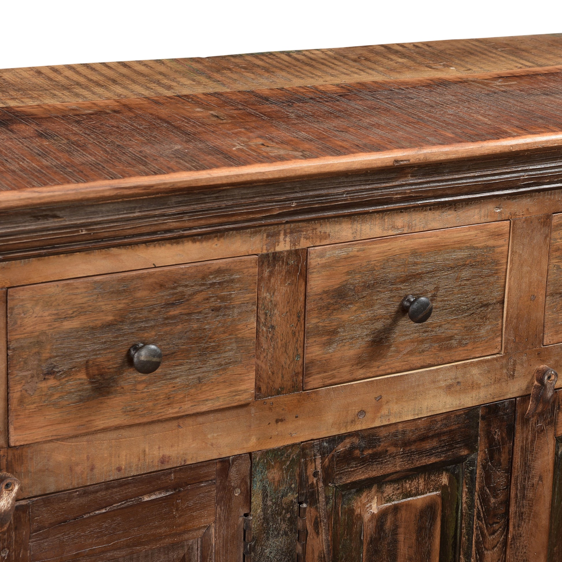 Mit seinen kunstvoll gearbeiteten, antiken Türen aus recyceltem Holz und den vier Schubladen bietet dieses Schmuckstück nicht nur Platz für alles, was du ordentlich verstauen willst, sondern auch einen Hauch von Vintage-Feeling für dein Wohnzimmer, Esszimmer oder den Flur. Ob als Anrichte für dein Geschirr oder als stilvolle Kommode für deine Schätze – dieses Sideboard passt sich an, und das mit Charakter!