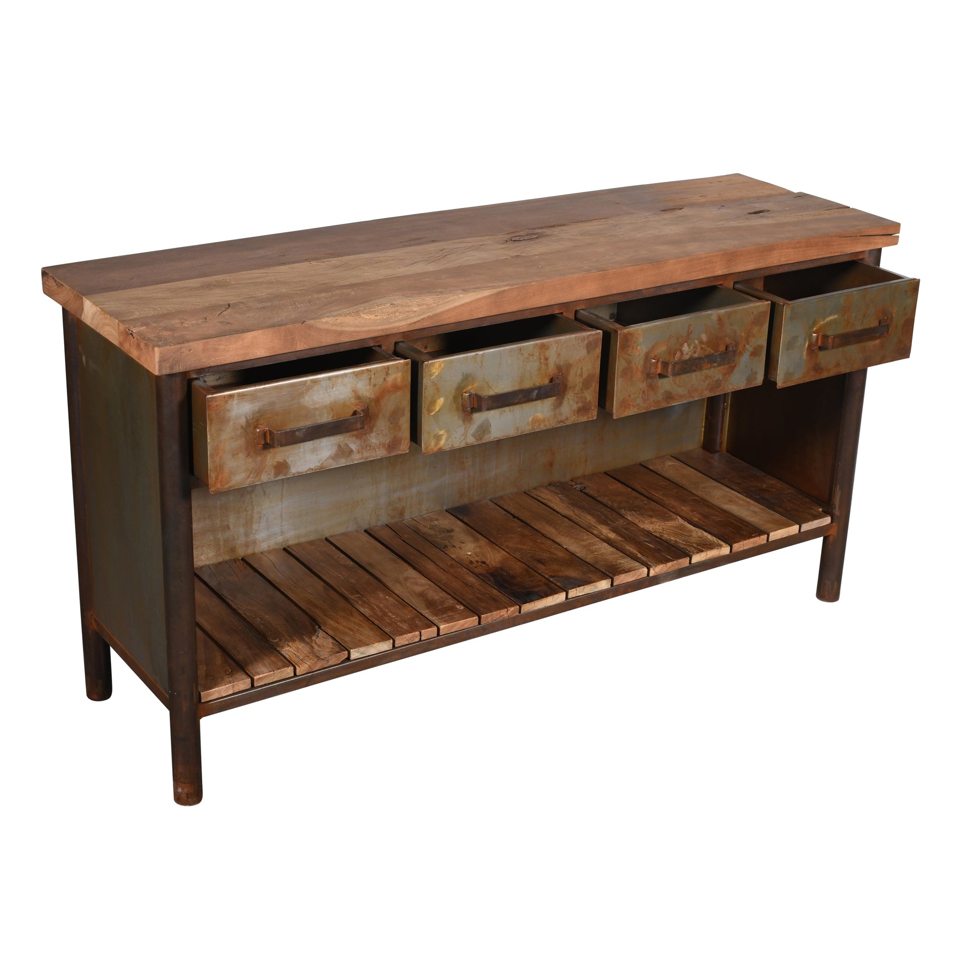 Das Altholz verleiht deinem Raum Charakter und erzählt Geschichten, während der robuste Metallrahmen zeigt, dass Stil und Stabilität Hand in Hand gehen können. Egal, ob du sie als Sideboard im Wohnzimmer oder als Anrichte im Esszimmer einsetzt – sie passt überall hin, wo eine Portion Charme und Ordnung gefragt ist.